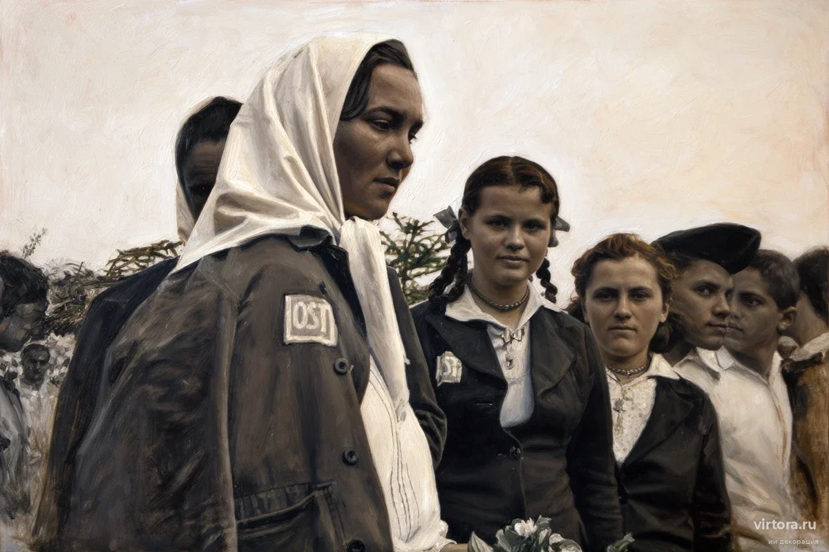 Путь в Германию лежал через закрытые товарные вагоны без воды и туалетов. На месте прибытия распределение людей напоминало торговлю скотом. Одна из угнанных девушек, которой на тот момент было 17 лет, вспоминала, как на площади в Западной Пруссии будущие хозяева буквально щупали мускулы и проверяли зубы, сравнивая подростков с лошадьми на ярмарке. Другие выжившие описывали унизительные «фильтрации» в Кельне: женщин заставляли раздеваться догола перед солдатами, обливали дезинфекцией и подвергали контрастному душу экстремальных температур.